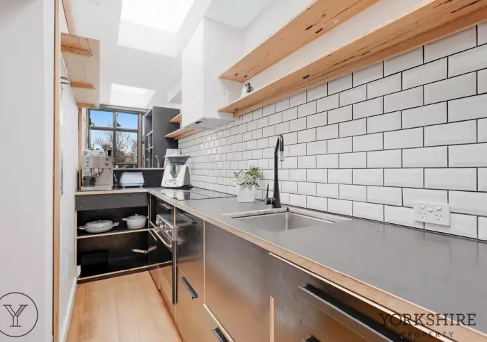 • Modern kitchen with subway splashback