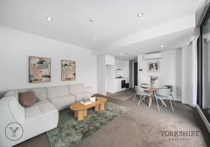 A chic bathroom, heating and cooling, secure car space and storage cage complete the package, while residents enjoy premium building amenities including a gym, cinema room, onsite building manager and lift access.