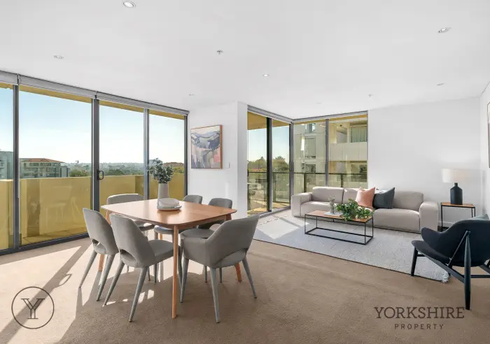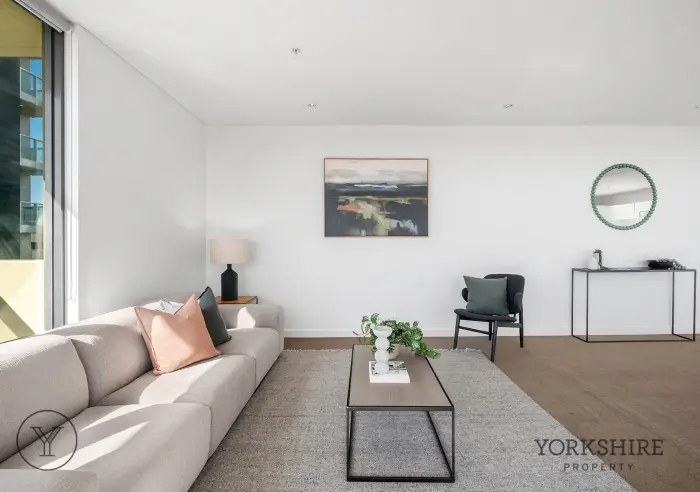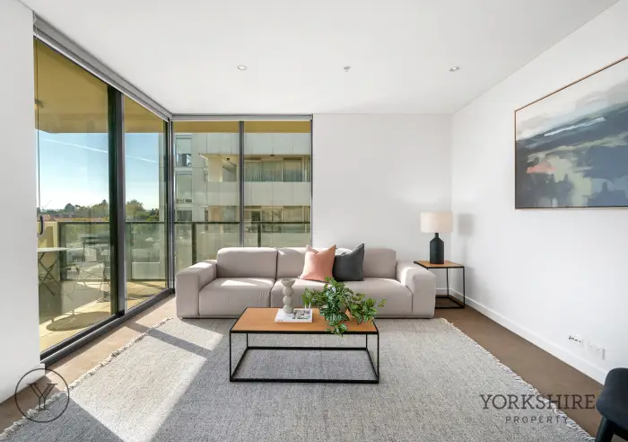 The apartment itself is thoughtfully designed, featuring a bright, north-facing open plan living and dining domain complemented by a sleek modern kitchen with quality appliances, gas cooktop and dishwasher. The spacious main bedroom includes mirrored built-in robes and a private ensuite, while a second bedroom and centrally positioned bathroom provide flexibility for guests or a home office. A north-facing private balcony extends the living space, creating an ideal setting to relax or entertain.